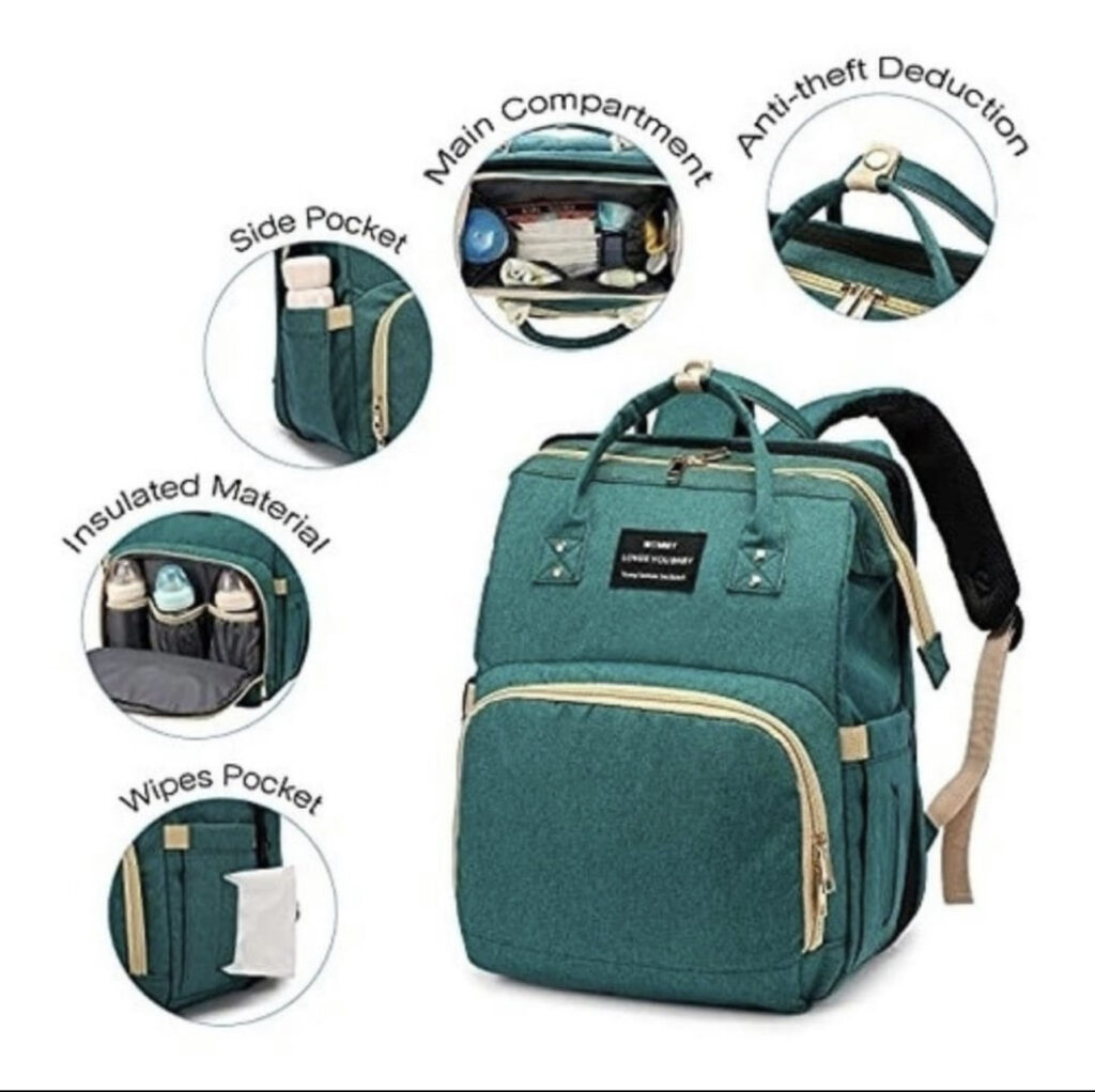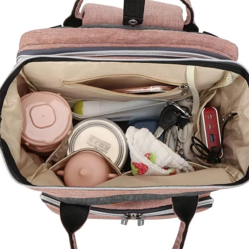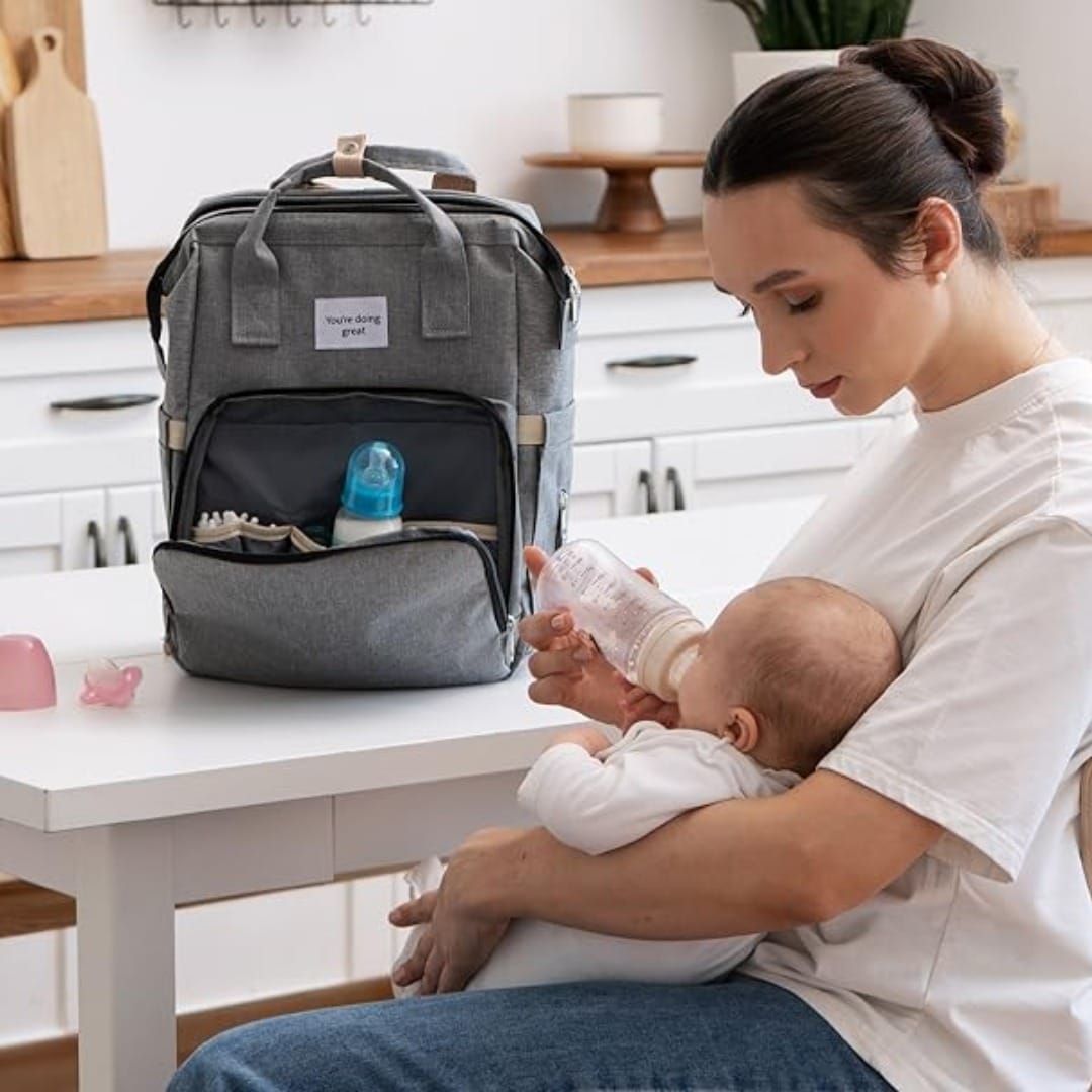 Puedes llevar fácilmente artículos para bebés, como ropa, pañales y toallas, junto con un bolsillo térmico para botellas y un puerto USB integrado para cargar.